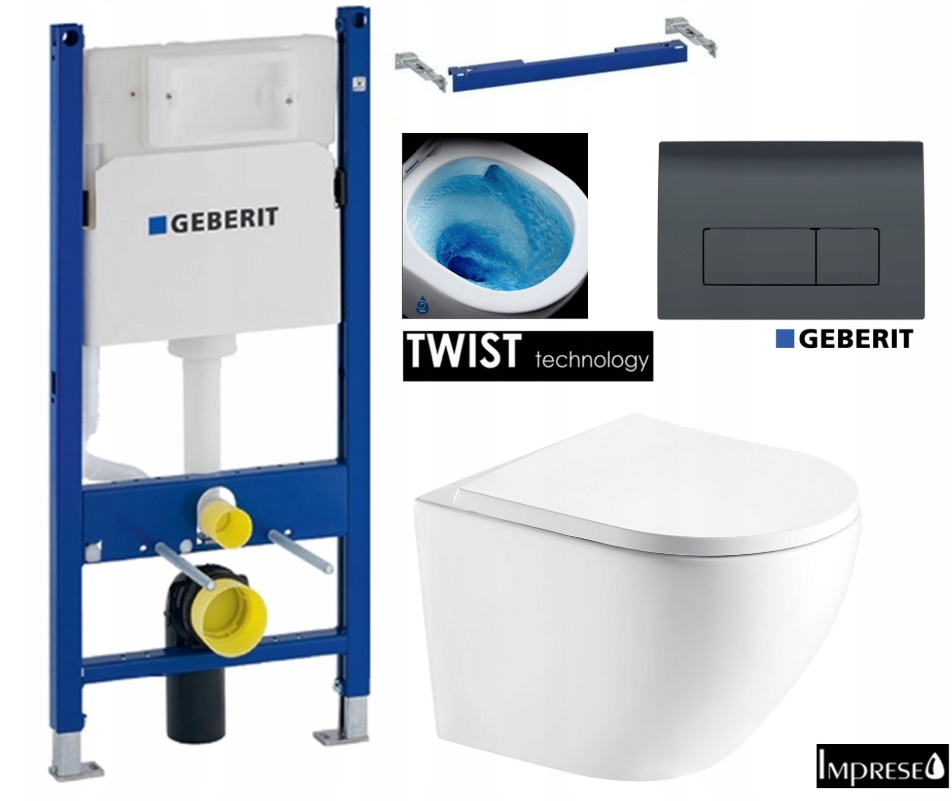 7w1 ZESTAW WC, STELAZ GEBERIT, MISKA WC TORNADO IMPRESE 48,5cm, PRZYCISK CZARNY