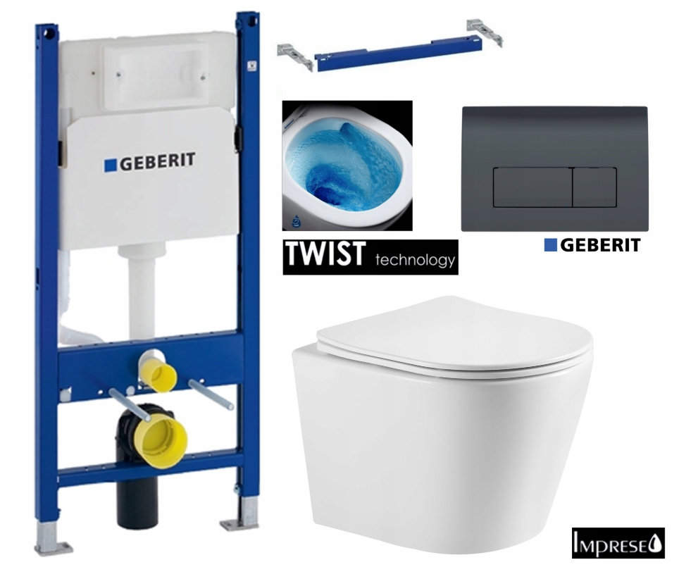 7w1 ZESTAW WC STELAZ GEBERIT, MISKA WC TORNADO IMPRESE 48,5cm, PRZYCISK Czarny + MOCOWANIA + USZCZELKA