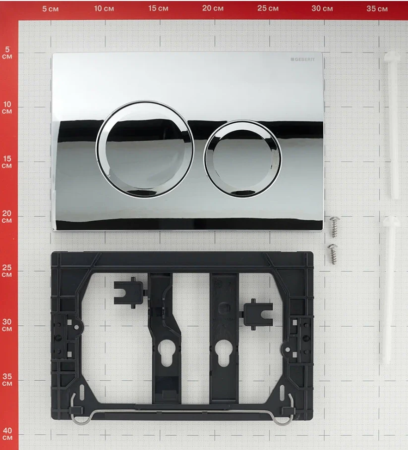 - Do uruchamiania spłukiwania dwudzielnego w spłuczkach podtynkowych Geberit Delta