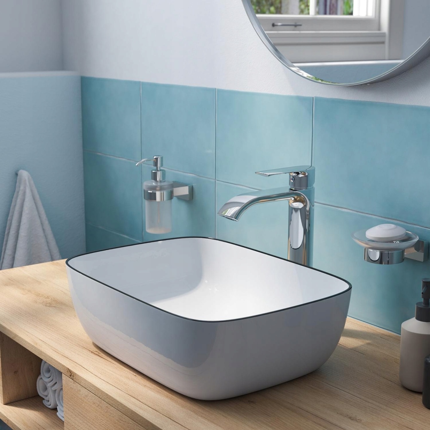 Funkcjonalność: Dzięki montażowi nablatowemu umywalka oferuje większą powierzchnię użytkową blatu, co zwiększa komfort codziennego korzystania z łazienki.